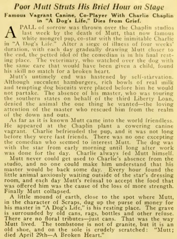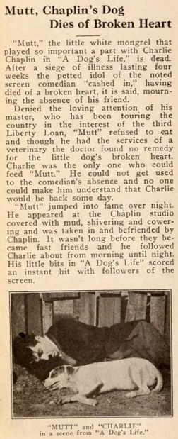 Mutt, Chaplin‘s Dog, Dies of Broken Heart