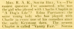Keystone days. The newest Chaplin is called Vanity Fair.“ (...)