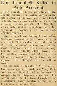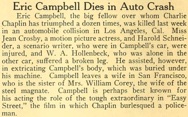 Editorial content. „Film-Mate of Charlie Chaplin Killed