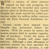 picture plant in Hollywood, Cal., Charlie Chaplin last week