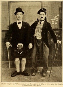 Charlie Chaplin and Harry Lauder as they appear in film to help