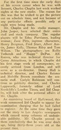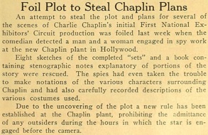 Editorial content. „Foil Plot to Steal Chaplin Plans
