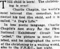 CHARLIE CHAPLIN CALLS NEW PLAY ,A DOG‘S LIFE‘