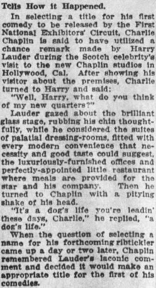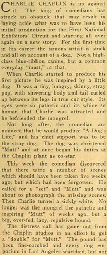 Editorial content. „Lowly Dog May Delay Chaplin Picture