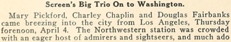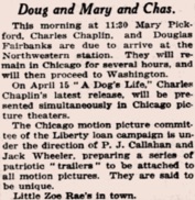 This morning at 11:30 Mary Pickford, Charles Chaplin,