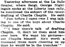 ,I hear there‘s talk of drafting Chaplin. O, don‘t let them