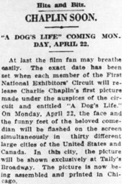 A Dog‘s Life is released by First National April 21, 1918.