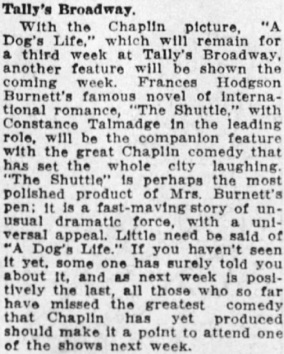 Charlie Chaplin in „A Dog‘s Life“ at Tally‘s Broadway.