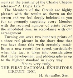 printing of the Charlie Chaplin release – „A Dog‘s Life.“