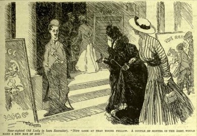 Near-sighted Old Lady (a keen Recruiter). „Now look