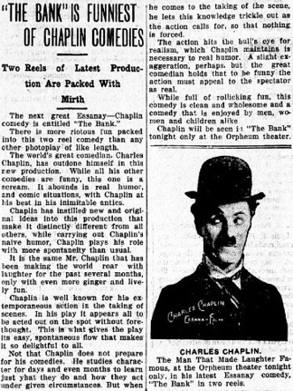 this two reel comedy than any other photoplay of like length. The world‘s great comedian, Charles Chaplin, has outdone