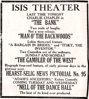 Anzeige. „Isis Theater, Heute Abend zum letztes Mal,