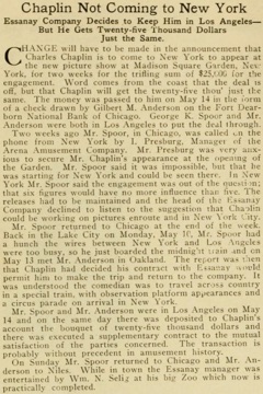 that Charles Chaplin is to come to New York