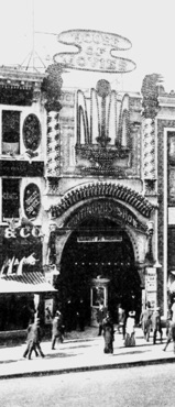 & Market Street Theatre, exterior by day, electric sign HOUSE OF MOVIES, San Francisco, 1915, Jack Tillmany Collection