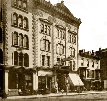 & John Carbutt (photographer), New Dearborn Theater, exterior by day, sign „Minstrels,“ Chicago, undated, Chicago History Museum
