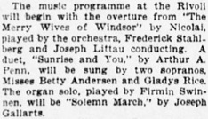 Rivoli Orchestra. Frederick Stahlberg, Conducting.