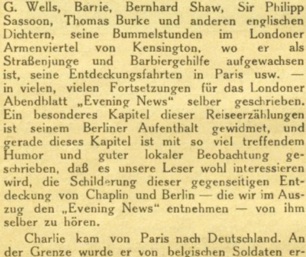 Redaktioneller Inhalt. „Charlie Chaplins Berliner Reise.
