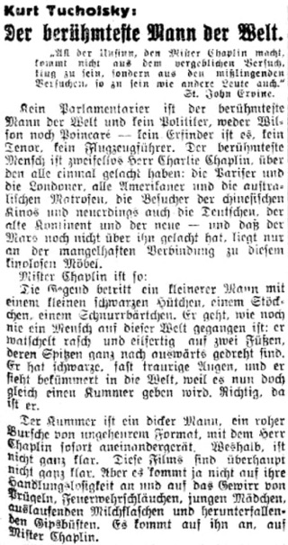 Kurt Tucholsky, Prager Tagblatt, July 22, 1922.
