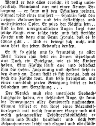 berühmteste Mensch ist zweifellos Herr Charlie Chaplin, über