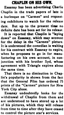 It is reported that Chaplin is ,laying down‘ at Essanay,