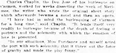 burlesque. He plays Don Jose, and Miss Purviance the title
