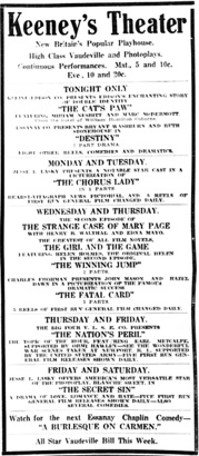 shown at Keeney‘s Theater in Hartford February or March 1916.