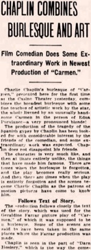 Charlie Chaplin‘s burlesque of Carmen, presented
