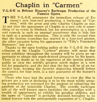 of „Carmen,“ with the great and only Charley Chaplin as star.