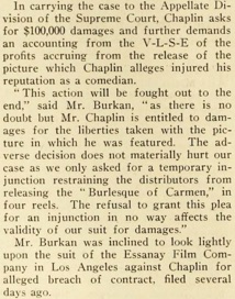 & APPEAL FROM SUPREME COURT IS MADE IN CHAPLIN SUIT