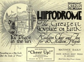 Management Charles Dillingham, Hippodrome, The Greatest Showplace on Earth Now Presenting Cheer Up! exterior, New York, 1917, postcard