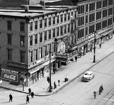 & Avenue Theatre, marquee Burlesque Burlesk, exterior by day, Detroit, undated
