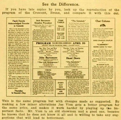 of the program of the Crescent, Bronx, and compare it with this cut.“