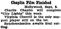 Editorial content. „Chaplin‘s City Lights Ready for Synchronizing.