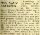 „City Lights“ And Silents