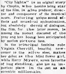 „City Lights,“ Charles Chaplin‘s new film vehicle which comes