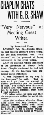 Editorial content. „Chaplin Chats With G. B. Shaw