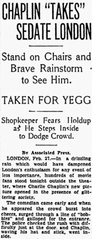 Editorial content. „Chaplin ,Takes‘ Sedate London