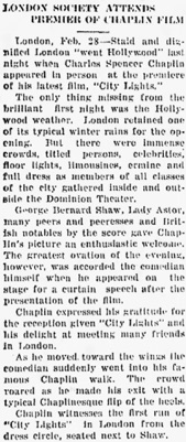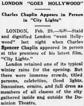 Chaplin witnesses the first run of City Lights in London