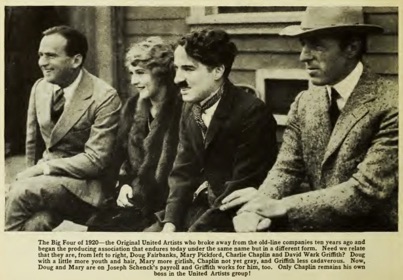 Doug Fairbanks, Mary Pickford, Charlie Chaplin and David Wark Griffith? Doug with a little more youth and hair, Mary