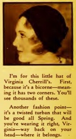 Editorial content. „I‘m for this little hat of Virginia Cherill´s.