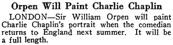 & Orpen Will Paint Charlie Chaplin