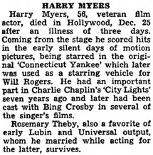 Harry Myers, 56, veteran film actor, died in Hollywood,