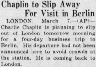 LONDON, March 7.– (AP) – Charlie Chaplin is planning