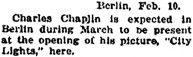 wird Chaplin dieser Premiere persönlich beiwohnen.“