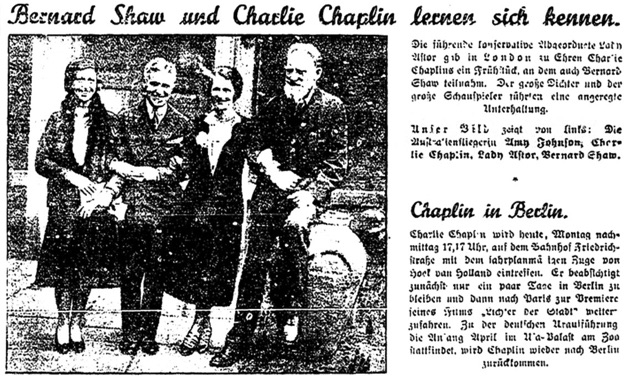 Redaktioneller Inhalt. „Bernhard Shaw und Charlie Chaplin