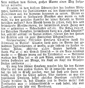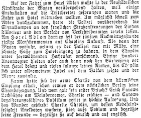 Redaktioneller Inhalt. „Charlie Chaplins Ankunft in Berlin.