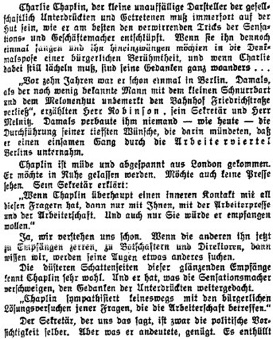 Redaktioneller Inhalt. „Besuch bei Charlie Chaplin