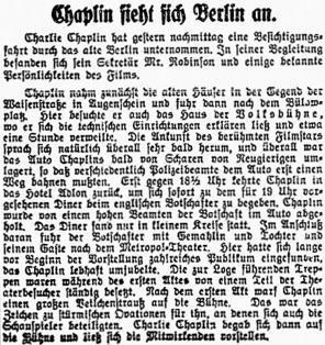 Redaktioneller Inhalt. „Chaplin sieht sich Berlin an.
