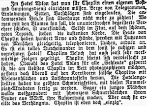 Charlie Chaplin sieht sich in Berlin um. Chaplin unterhält