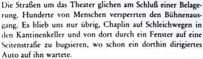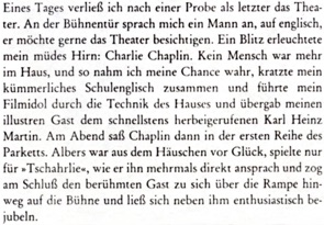 den Bühnenausgang. Es blieb uns nur übrig, Chaplin auf
